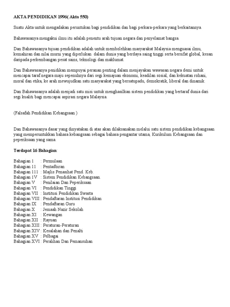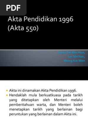 Related : Akta Pendidikan 1996 (Akta 550) / Akta pendidikan 1996 (akta 550)..