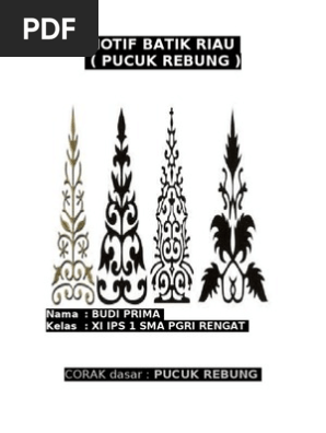 Hal ini terjadi karena orang melayu umumnya beragama islam sehingga corak hewan (fauna) dikhawatirkan menjurus kepada halhal yang berbau keberhalaan. Motif pucuk rebung kuntum dewa 3. Ini adalah beberapa motif dari batik tabir riau Motif dan corak tenun melayu riau budaya seni tenunan. Yang sangat elegan digunakan, baik pria maupun wanita. Motif batik riau memiliki keunikan dan kekhasan yang berbeda dengan motif batikdaerah lainnya, selain itu corak atau motifbatik riau juga hampir mirip dengan kebudayaan luar seperti kebudayaan melayu malaysia dan singapura. Pembuatannya pun dilakukan secara tradisional buatan tangan seperti biasanya dengan alat canting, pewarna pakaian, lilin cair, dan yang lainnya. Baik corak batik yang diterapkan pada batik melayu juga berbeda dengan batik jawa dan batik lainnya. Tokoh wanita melayu riau yang sangat berperan dalam mengembangkan kerajinan kain songket di riau adalah tengku maharatu, permaisuri sultan syarif kasim ii. Motif dan ukiran melayu riau batik pattern motif design riau. Berikut ini adalah beberapa motif kesenian melayu riau : Termasuk batik riau, yang me motif khas melayu. Suhaimi, dkk pengantar studi tamadun melayu.